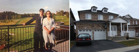 | Bố mẹ Jennifer Pan (trái) và ngôi nhà của họ ở số 238 Helen Avenue |