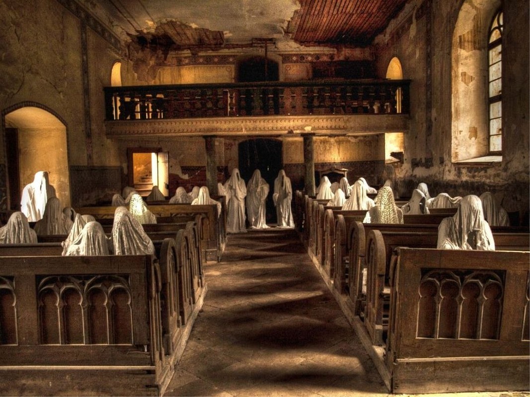 Khi tới nhà thờ St. George ở Cộng hòa Czech, nhiều người giật mình khi nhìn thấy các "hồn ma" màu trắng đang cúi đầu cầu nguyện. Họ cho rằng nơi đây bị ma ám hoặc bị nguyền rủa. Thế nhưng, sự thật hoàn toàn khác.