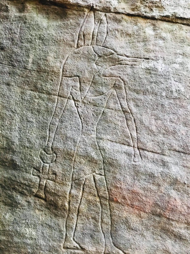Những nhà thám hiểm dũng cảm đã trèo lên khoảng trống chật hẹp giữa hai mặt đá sa thạch, tiến vào một lối đi hẹp để kiểm tra các chữ tượng hình. Các biểu tượng này có vẻ ngoài khá quen thuộc với bất kỳ ai có hiểu biết về Ai Cập cổ đại và bao gồm hình ảnh của Anubis, tên của Vua Khufu được đính kèm trong đồ hình theo phong tục và nhiều biểu tượng khác.