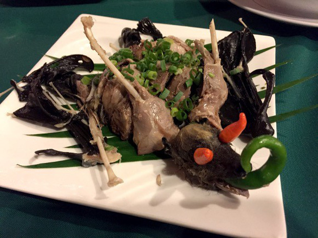Ngoài ra, thực khách nhiều khi còn được phục vụ bát súp chứa con dơi chưa được vặt lông và trên người còn đầy đủ mắt và cánh. Nhiều người yêu cầu lột da con dơi hoặc vặt sạch lông nhưng cách ăn truyền thống của món ăn này là cứ thế mà cho thịt vào miệng nhai và lừa xương cũng như lông ra sau. Chỉ nhìn thôi, món ăn này cũng khiến không ít thực khách phải hét toáng lên chứ đừng nói là bỏ vào miệng ăn.