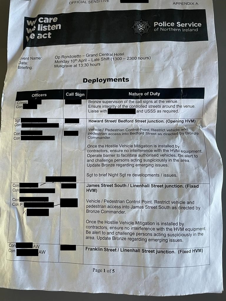 “Tôi ra khỏi nhà và lái xe trên đường phố thì vô tình nhìn thấy tài liệu. Tôi dừng lại, nhặt nó lên. Điều đầu tiên tôi thấy đây là tài liệu của PSNI có dòng chữ ‘nhạy cảm’ ở trên cùng”, anh Nolan, người tìm thấy tài liệu quan trọng nói hôm 12/4.