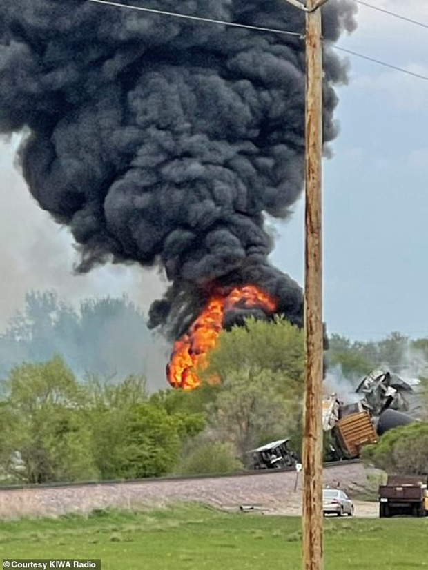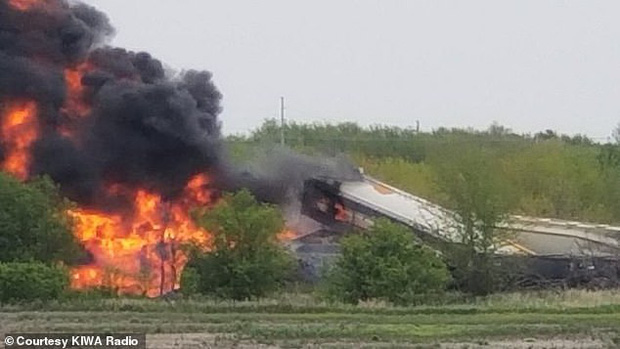 Một tai nạn đường sắt kinh hoàng xảy ra tại thị trấn phía Tây Bắc bang Iowa (Mỹ) vào chiều Chủ nhật vừa qua (16/5, theo giờ địa phương). Theo đó, chuyến tàu chở hàng Union Pacific với khoảng 30 toa tàu đã bị trật đường ray tại Sibley, một thành phố nhỏ khoảng 3.000 người gần Sioux Falls, Nam Dakota, sau đó bất ngờ phát nổ dữ dội khiến cả một khu vực rộng lớn bị bao phủ bởi khói đen nghi ngút.