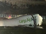 Phần đầu máy bay bị mắc kẹt trên bờ kè chắn sóng, đuôi hướng ra biển. Thân máy bay vỡ nát, phần đầu bị thủng lớn, cánh gãy gập, thân giữa gãy đôi còn đuôi chỉ lộ ra một phần nhỏ. Ở phía trái, cửa thoát hiểm đã bung phao trượt, trong khi phía phải chỉ mở cửa nhưng phao chưa bung hoàn toàn.