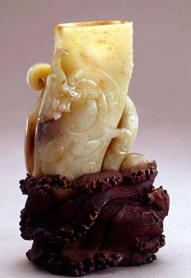 Ngoài phần thân được chế tác tinh xảo từ ngọc, đế của chiếc chén ngọc còn được làm từ gỗ giáng hương (gỗ tử đàn) vô cùng quý hiếm.