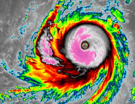 Hình ảnh vệ tinh siêu bão mạnh nhất năm 2015. Ảnh: Washington Post |