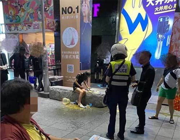 Khi vừa bị tạt chất thải, cô gái khá hoảng loạn. Tóc tai, quần áo và giày đều dính đầy chất thải. Mùi hôi thối bốc lên nồng nặc ở khu vực Tín Nghĩa. Một số người đi đường tốt bụng đã mua nước khoáng đến giúp cô gái này rửa sơ những chất bẩn trên người.