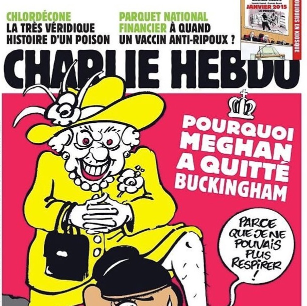 Vài ngày sau đó, Charlie Hebdo, tạp chí châm biếm của Pháp đã vấp phải sự chỉ trích dữ dội khi tung ra bức tranh được in trên tạp chí với tiêu đề "Tại sao Meghan bỏ Buckingham?". Bức tranh biếm họa mô tả hình ảnh Nữ hoàng Anh giống như đang chẹt gối vào cổ Meghan cùng lời rên rỉ vang lên: "Tôi không thể thở được".