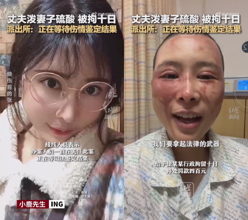 Về phần người chồng, anh này đã bị giam giữ 10 ngày và phải nộp khoản tiền là 400 nhân dân tệ (1,3 triệu đồng). Tuy nhiên mức phạt này đã khiến cư dân mạng Trung Quốc vô cùng phẫn nộ. Ngay sau đó chủ đề “Chồng tạt axit vào vợ, chỉ bị giam 10 ngày” ngay sau đó trở thành chủ đề hot trên mạng xã hội đại lục với hơn 82 triệu lượt xem thời điểm viết bài.