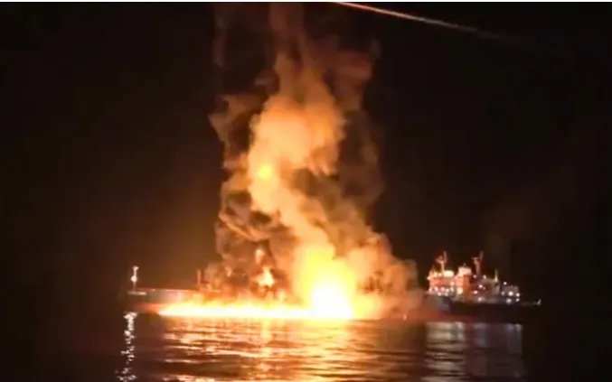 14/03/2026 17:17Tàu chở dầu Mỹ bị tấn công, bốc cháy dữ dội gần eo biển Hormuz