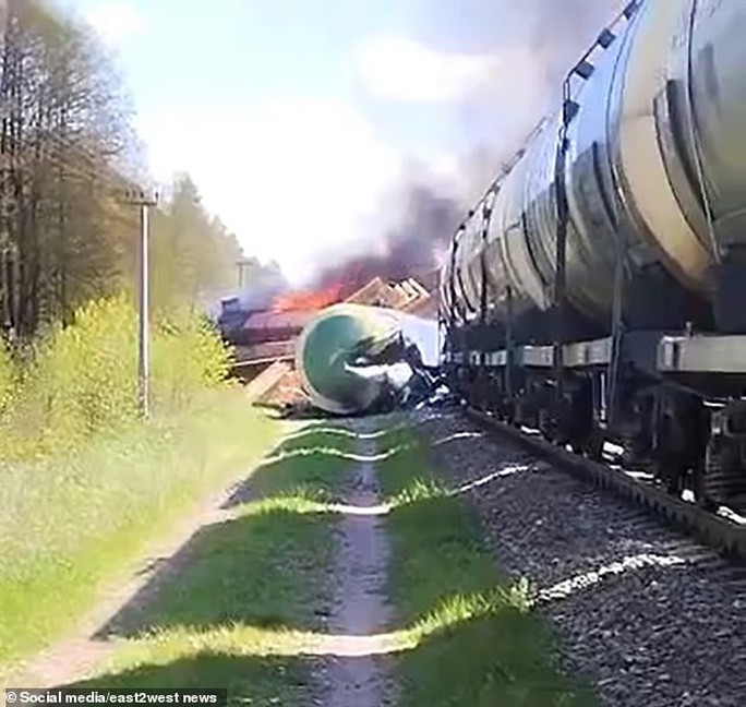 Thống đốc vùng Bryansk Alexander Bogomaz thông báo trên Telegram hôm 1-5: "Một thiết bị không xác định đã phát nổ ở mốc Km 136 trên tuyến đường sắt Bryansk-Unecha, khiến đầu máy một đoàn tàu chở hàng bị trật bánh".