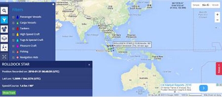 Hải trình tàu ngầm Đà Nẵng trên tàu hàng Rolldock Star. Ảnh: MarineTraffic |