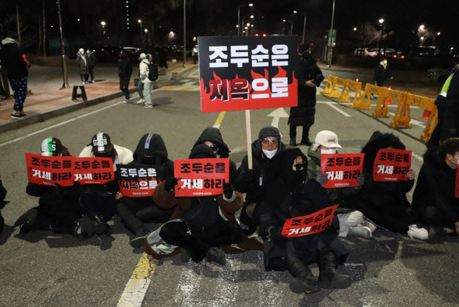 Trước đó, ở trước cửa nhà tù, ngoài cảnh sát và phóng viên, rất đông người tập trung tại đây. Họ tổ chức biểu tình để ngăn cản việc trả tự do cho tên tội phạm với những tấm biển có nội dung gay gắt "Cho Doo Soon hãy xuống địa ngục đi".