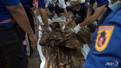 Thi thể đã thối rữa được khai quật tại khu mộ tập thể |