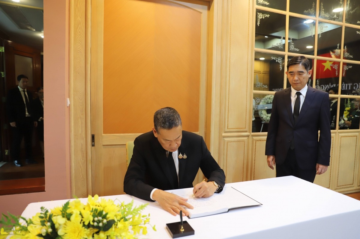 Trước đó (hôm 25/7), Thủ tướng Thái Lan Srettha Thavisin cũng đã thay mặt Chính phủ Hoàng gia và nhân dân Thái Lan, đến viếng, dâng vòng hoa và ghi sổ tang Tổng Bí thư Nguyễn Phú Trọng tại Đại sứ quán Việt Nam tại Thái Lan. Ghi trong sổ tang, Thủ tướng Srettha gửi lời chia buồn sâu sắc và bày tỏ sự cảm thông tới Chính phủ và nhân dân Việt Nam cũng như gia quyến đồng chí Tổng Bí thư Nguyễn Phú Trọng trong thời khắc đau buồn.