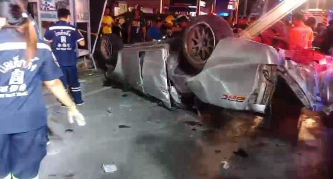 Theo đó, sĩ quan cảnh sát Samran Chuaythao dẫn lời trình báo của một tài xế taxi, cho biết, vào khoảng 1h sáng 29/9, anh nhìn thấy một chiếc xe bán tải đang di chuyển với tốc độ cao trên đường King Kaew. Khi chạy tới khu vực Lat Krabang, chiếc xe mất lái, trượt lên vỉa hè, đâm vào cột điện bên đường rồi lật ngửa.