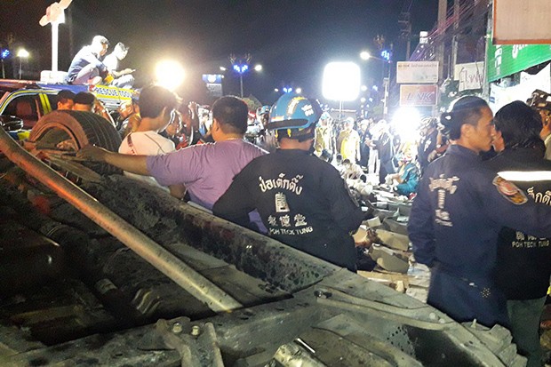 Cú va chạm mạnh khiến 12 người ngồi ở phần thùng xe văng xuống đường, tử vong tại chỗ. 6 người bên ngồi bên trong xe bị thương nặng, được người dân đưa vào bệnh viện Chularat 9 để cấp cứu. Do vết thương quá nặng nên 1 trong 6 nạn nhân đã không qua khỏi, nâng tổng số người thiệt mạng lên 13.