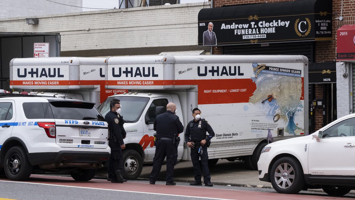 Giữa dịch bệnh, New York đã trải qua nhiều thay đổi, trong đó có việc xử lý các thi thể. Thành phố đã mở rộng khả năng chứa thi thể lên tới 2.000, tuy vậy các nhà tang lễ vẫn phải từ chối dịch vụ hỏa táng, do họ không thể chứa thêm được nữa. Một lò hỏa táng ở Brooklyn bị quá tải nghiêm trọng vì lượng thi thể quá lớn. Các lễ hỏa táng bị hoãn tới giữa tháng Năm và thậm chí sau đó. Các thi thể được đặt trong xe tải đông lạnh ở khu để xe của các nhà tang lễ.