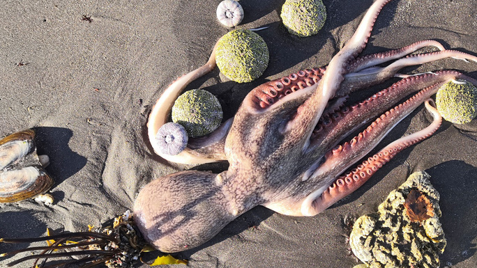 Hình ảnh cho thấy hàng trăm con bạch tuộc, cá lớn, nhím biển và cua chết dạt vào bờ biển Khalaktyrsky trong bối cảnh các nhà bảo vệ môi trường cảnh báo về một thảm họa sinh thái.
