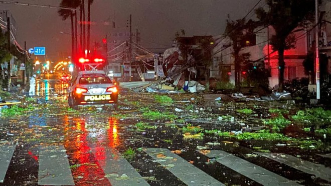 Video từ Miyazaki, gần nơi cơn bão đổ bộ, cho thấy nhiều cột điện bị đổ và đường sá đầy cành cây và các mảnh vỡ khác.