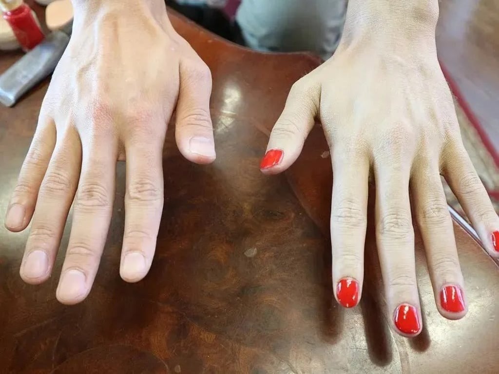 "Tôi đã thoa kem nền lên tay và sơn móng tay để mô phỏng bàn tay mềm mại, bóng mượt của phụ nữ. Sẽ chân thực hơn nếu đeo một chiếc dây buộc tóc vào cổ tay", Jinushi giải thích thêm.