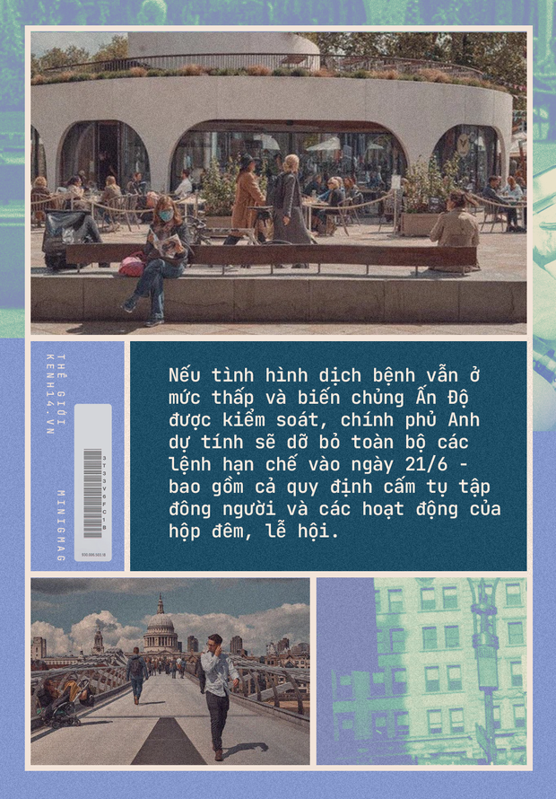 Cuộc sống tại Anh Quốc lúc này cũng đang khá cởi mở. Nhà hàng, quán bar, hộp đêm, bảo tàng, rạp hát và khách sạn đã được mở cửa suốt 2 tháng qua với số lượng khách giới hạn và vẫn áp dụng giãn cách. Bên ngoài, hầu hết người dân gần như không đeo khẩu trang, nhưng quy định buộc phải đeo vẫn được áp dụng trong trường hợp tụ tập ăn uống trong phòng kín.