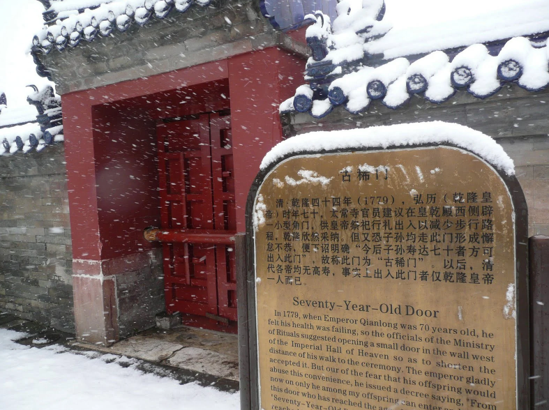 Tuy nhiên, ai mà ngờ trăm năm sau đó, không ai trong số các hậu duệ hoàng tộc sống đến tuổi 70 và đi Thiên Đàn bái tế, vì vậy chỉ có Hoàng đế Càn Long bước qua cánh cửa này kể từ khi nó được xây dựng.