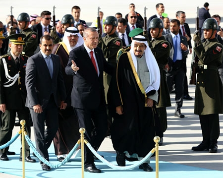 Đích thân Tổng thống Thổ Nhĩ Kỳ đón tiếp quốc vương Saudi Arabia tại sân bay. |