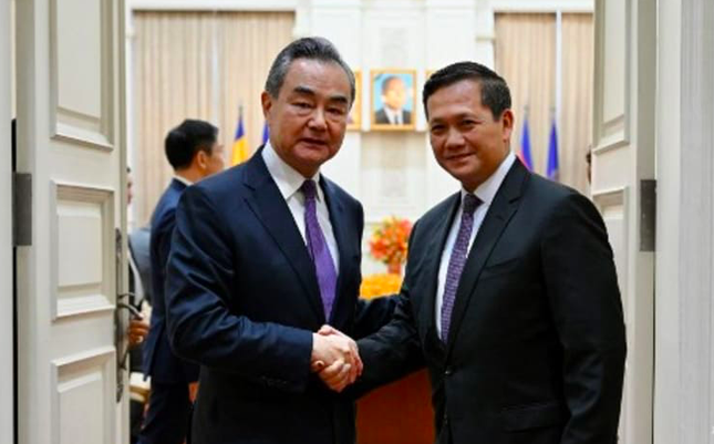 Đến Phnom Penh, Ngoại trưởng Trung Quốc Vương Nghị gặp Thủ tướng sắp mãn nhiệm Hun Sen, Thủ tướng kế nhiệm Hun Manet và các quan chức Campuchia khác.