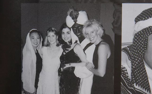 Trong bức ảnh vừa được công bố trên Tạp chí Time, ông Trudeau, lúc đó 29 tuổi và đang là giáo viên của một trường tư , đội một chiếc khăn rằng Ả Rập màu trắng và mặc một chiếc áo choàng. Tay ông choàng cổ và tay kia cầm tay một phụ nữ. Đáng chú ý, mặt, cổ và tay của ông Trudeau được hóa trang với một màu nâu sậm nổi bật.