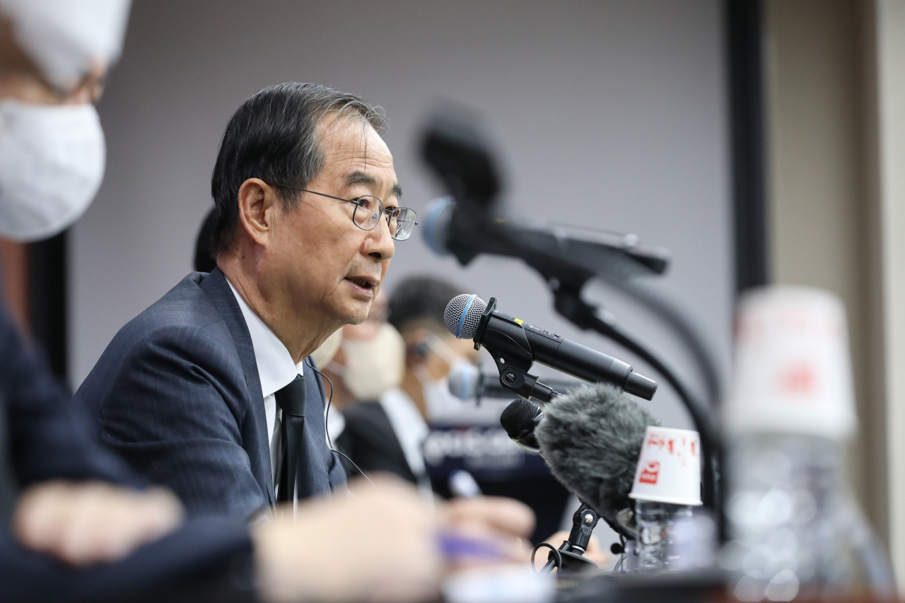 Ông được một phóng viên hỏi về "khởi đầu và kết thúc trách nhiệm của chính phủ Hàn Quốc" liên quan tới thảm họa Itaewon là gì. Do sự cố truyền âm thanh, thủ tướng Hàn Quốc ban đầu không nghe được câu hỏi. Phóng viên sau đó nêu lại câu hỏi bằng tiếng Hàn.