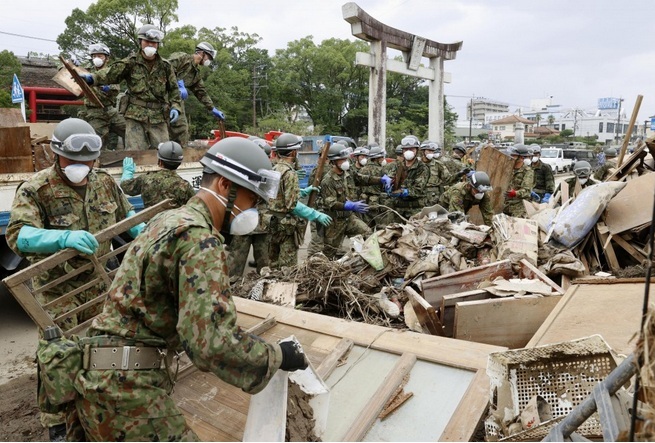Thông số từ Bộ Đất đai - Hạ tầng - Giao thông - Du lịch Nhật Bản công bố ngày 13/7 cho biết, tình hình mưa kéo dài trên diện rộng đã khiến nước tại 105 con sông thuộc 14 tỉnh tràn bờ, và gây ra 216 vụ sạt lở đất tại 27 tỉnh. Trong đó, tỉnh Kumamoto là nơi xảy ra nhiều vụ sạt đất nhất với 56 vụ.