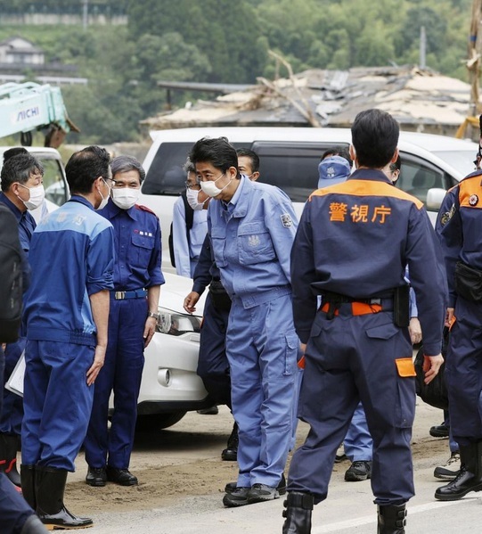 Đầu chuyến thị sát, ông Abe đã tới thăm nhà dưỡng lão Senjuren, nơi có 14 người thiệt mạng do ngập lụt tại sông Kuma. Sau đó, Thủ tướng Abe có cuộc gặp với lãnh đạo tỉnh Kumamoto Ikuo Kabashima, địa phương chịu thiệt hại về người lớn nhất trong đợt thiên tai này.