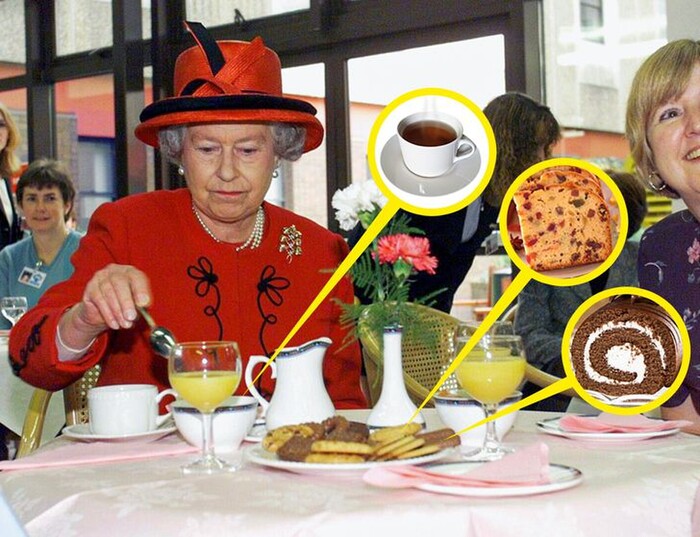 Sau khi buổi lễ nhà thờ kết thúc, họ sẽ về nhà cùng ăn trưa. Thực đơn có thể là món salad tôm thường hoặc tôm hùm, gà tây nướng, và các món ăn kèm như cà rốt, cải Brussels, củ cải tây. Đôi khi họ cũng ăn khoai tây nghiền hoặc nướng, hành tây nhồi và nước sốt tự làm. Không bao giờ họ ăn đồ có tỏi vì Nữ hoàng không thích nó.