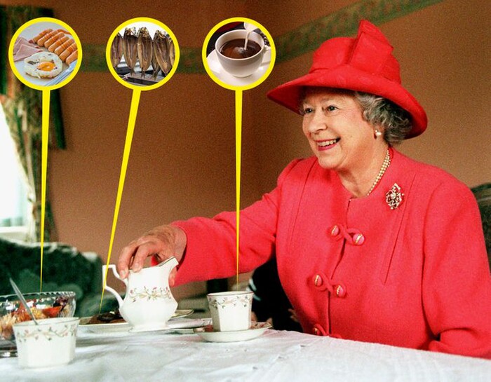 Bữa sáng là bữa ăn đầu tiên trong ngày của gia đình trước khi đi lễ nhà thờ. Họ sẽ ăn trứng, thịt xông khói, xúc xích, cá trích hoặc cá tuyết muối hun khói. Đây là hai món cá yêu thích của Nữ hoàng, thậm chí bà còn ăn chúng vào bữa tối muộn.