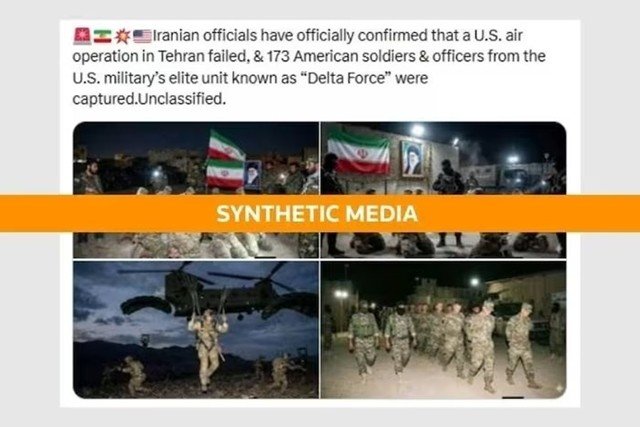 Một bài đăng thậm chí khẳng định: “Các quan chức Iran đã chính thức xác nhận rằng một chiến dịch không kích của Mỹ ở Tehran đã thất bại, và 173 binh sĩ cùng sĩ quan Mỹ thuộc đơn vị tinh nhuệ Delta Force đã bị bắt giữ.”