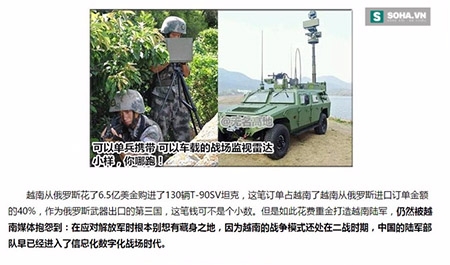 Mới đây, trang mạng Sina của Trung Quốc đăng tải thông tin cho biết, Việt Nam đã chi 650 triệu USD để mua từ Nga 130 xe tăng chiến đấu chủ lực T-90SV.