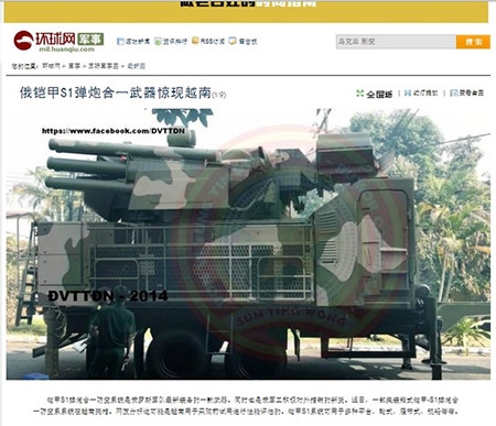 | Bức ảnh được chú thích là tổ hợp tên lửa-pháo phòng không Pantsir-S1 của Việt Nam xuất hiện trên Thời báo Hoàn Cầu của Trung Quốc |