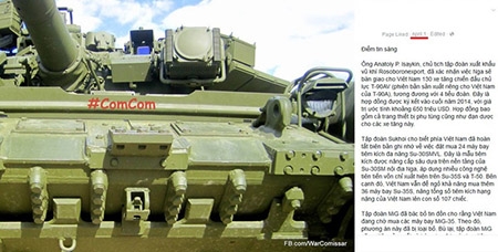 | Thông tin Việt Nam mua 130 xe tăng T-90 với giá 650 triệu USD xuất hiện trên trang Facebook nổi tiếng của Việt Nam |