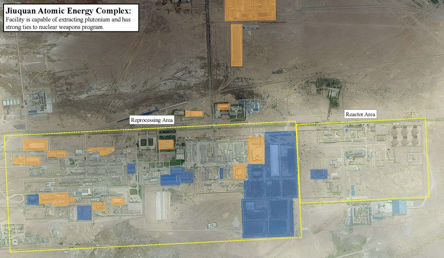 Theo The Washington Times, chỉ tính riêng hai năm qua, khu tái chế hạt nhân của khu vực sản xuất plutonium thuộc khu liên hợp năng lượng nguyên tử Jiuquan đã mở rộng gấp đôi. Một lò phản ứng mới cũng xuất hiện trong năm qua.