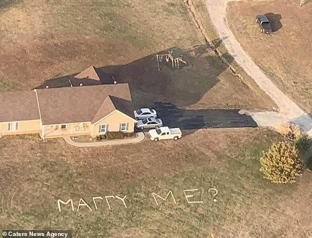 Ryan Wilson, đến từ Lewisport, Kentucky, đã dựng một tấm biển lớn ghi “Marry Me” (Cưới anh nhé) trong khu vườn nhà mình bằng những mảnh gỗ trước khi đưa bạn gái Shawna Aud lên máy bay rồi cầu hôn cô.