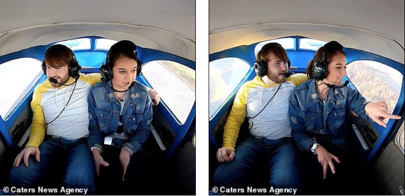 Sau đó, chiếc máy bay nghiêng mạnh về bên trái và khi Shawna nhìn thấy điều bất ngờ mà bạn trai dành tặng cho mình, cô cười hạnh phúc và quay sang nhìn người yêu. Cô quay lại với Ryan, người bạn trai cầm chiếc nhẫn lên đưa cho bạn gái và nhận được câu trả lời “có” từ người yêu.