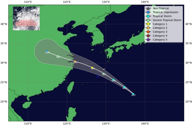 Bão Bebinca hình thành vào tối 14-9, dự kiến đổ bộ giữa các khu vực phía Bắc Qidong thuộc tỉnh Giang Tô và phía Nam Ninh Ba thuộc tỉnh Chiết Giang, tất cả đều nằm ở phía Đông Trung Quốc.