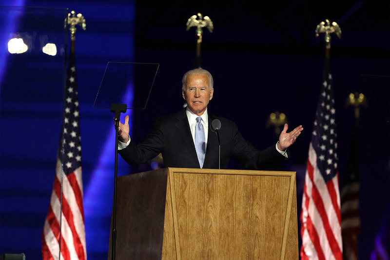 Trong bài phát biểu được truyền hình trực tiếp trên sóng quốc gia từ một sự kiện ở quê nhà Wilmington, bang Delaware tối 7/11 theo giờ Mỹ (sáng 8/11 giờ Việt Nam), ông Biden cam kết sẽ trở thành tổng thống của sự đoàn kết và thống nhất. Ông kêu gọi mọi người dân Mỹ hòa giải, cùng đồng lòng sát cánh vượt qua mọi khó khăn để "hàn gắn linh hồn của nước Mỹ”.