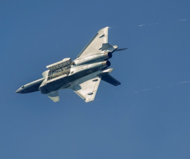 Hai máy bay tàng hình J-20 của Trung Quốc lần đầu tiên bay cùng nhau, thực hiện các thử nghiệm mới, bao gồm mở khoang vũ khí trên không.