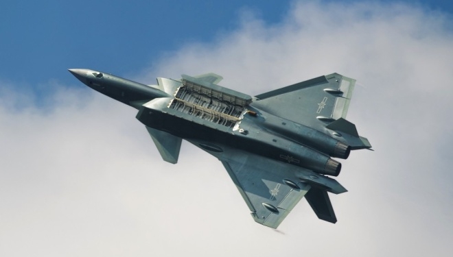 Trong bài bay này, J-20 cũng tiến hành thử nghiệm mở khoang vũ khí trên không. Ảnh: Weibo. |