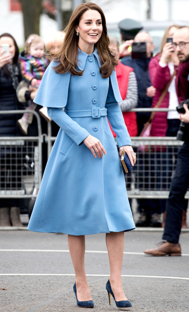 Mỗi lần Công nương Kate xuất hiện cũng tạo ra sự hào hứng không kém gì mẹ chồng là Công nương Diana ngày trước. Bên cạnh những mẫu váy có thiết kế trơn đơn giản, Công nương Kate còn có một bộ sưu tập những bộ váy cách điệu như mẫu váy xanh nhạt giả áo choàng ở vai hay chiếc váy sơ mi hồng dáng dài, xếp li dọc ở phía trước.