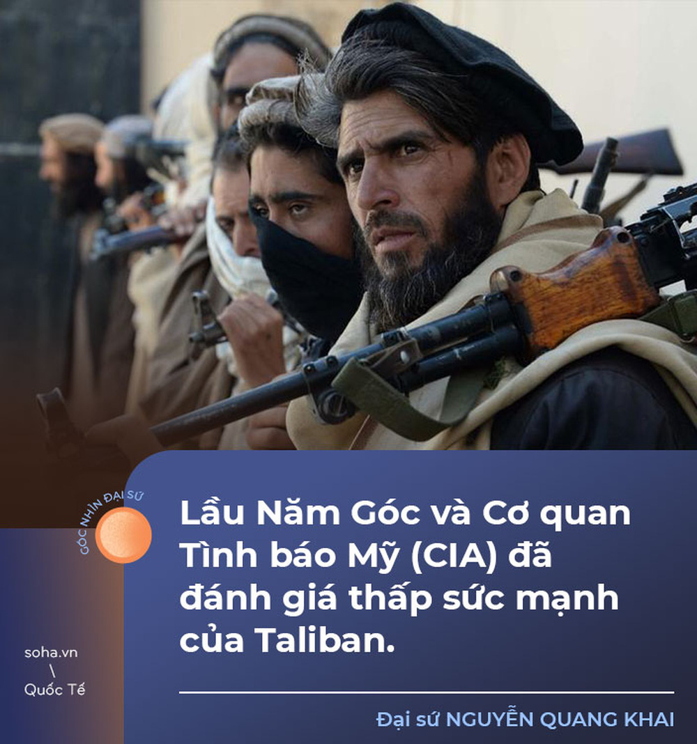 Đồng thời, Lầu Năm Góc và Cơ quan Tình báo Mỹ (CIA) đã đánh giá thấp sức mạnh của Taliban. Họ cho rằng Kabul có thể thất thủ trong 1-3 tháng, nhưng chỉ trong chưa đầy một tuần Taliban đã chiếm được Kabul và Tổng thống Ashraf Ghani đã phải bỏ chạy ra nước ngoài.
