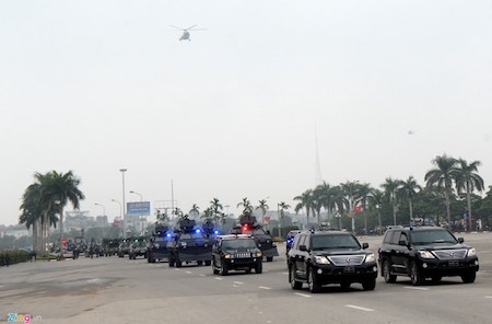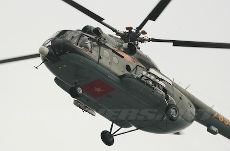 Nhằm bảo đảm an ninh trong suốt thời gian diễn ra Đại hội Đại biểu toàn quốc lần thứ XII của Đảng (từ ngày 20-28/1), công an – quân đội đã huy động hàng nghìn cán bộ, chiến sĩ cũng như hàng trăm khí tài (trong đó có cả máy bay trực thăng) tham gia công tác bảo vệ. Ảnh: Hai trực thăng của Trung đoàn trực thăng 916 trong buổi diễn tập phán án bảo vệ Đại hội Đảng tại SVĐ Mỹ Đình. Nguồn ảnh: Zing |