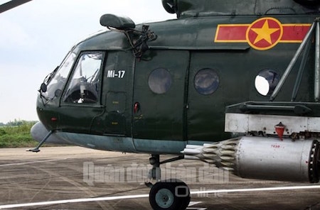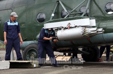 Ảnh: Các cán bộ kĩ thuật đang lắp đạn rocket lên trực thăng Mi-17 của Trung đoàn 916 chuẩn bị tham gia diễn tập bắn, ném ở Thọ Xuân, Thanh Hóa trong năm 2015. |