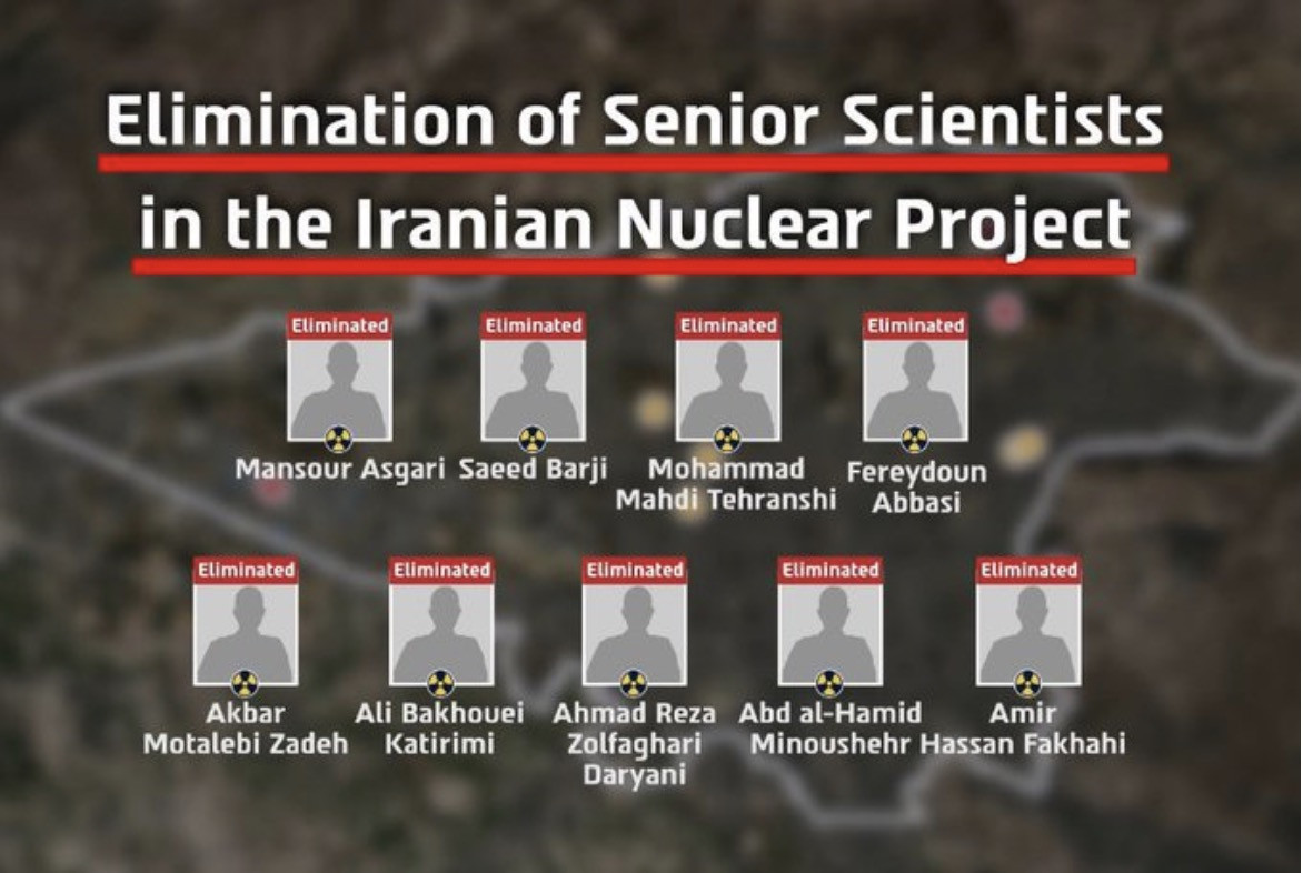 Tới ngày 15/6, Israel tuyên bố đã loại bỏ ít nhất 14 nhà khoa học hạt nhân của Iran bằng các cuộc không kích của IDF.